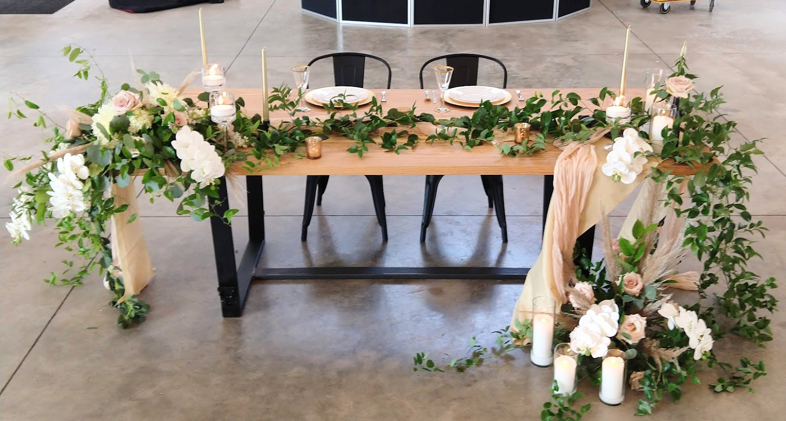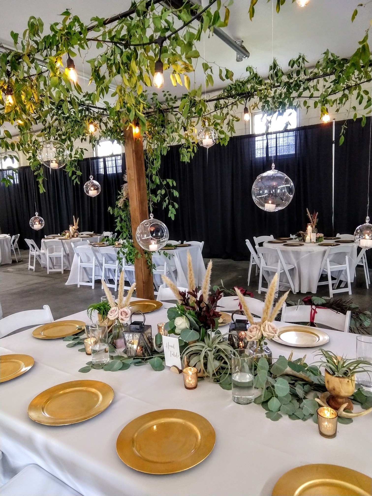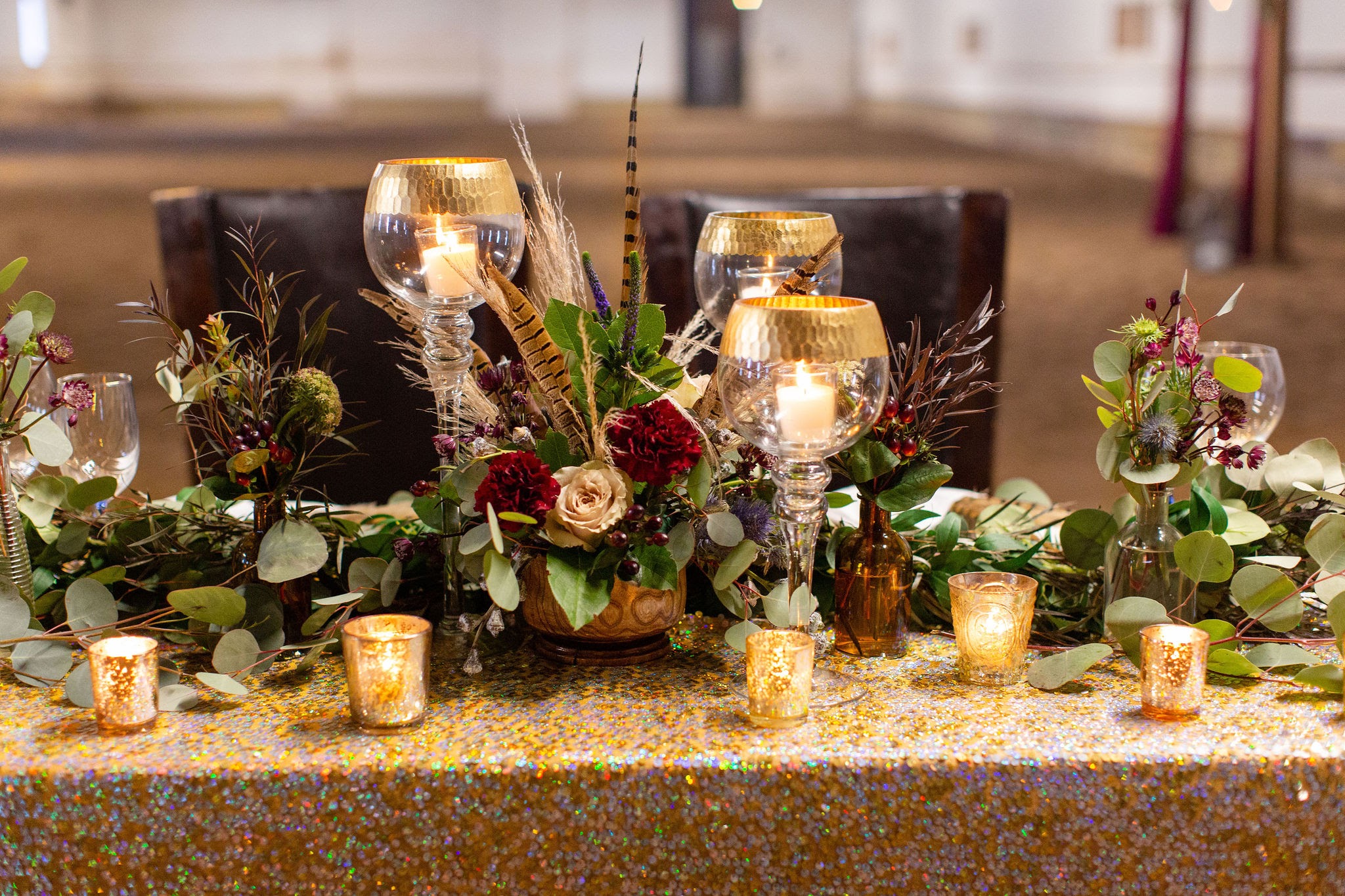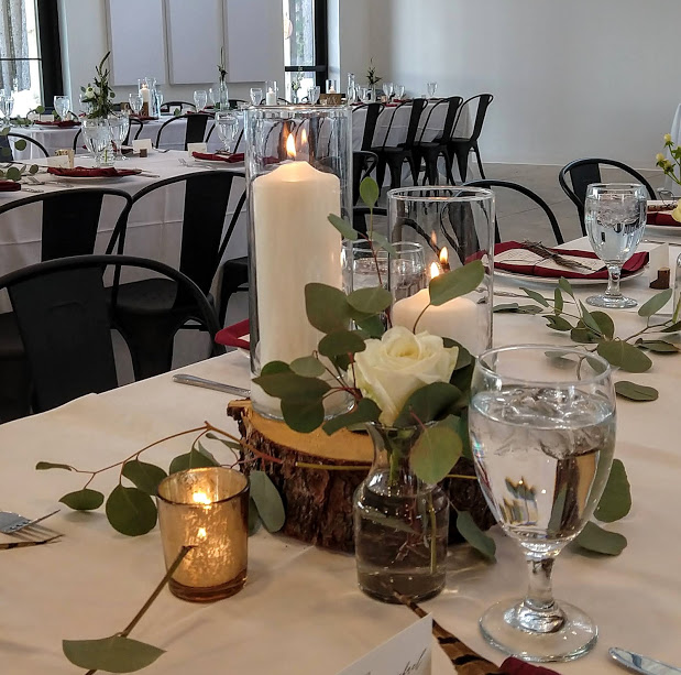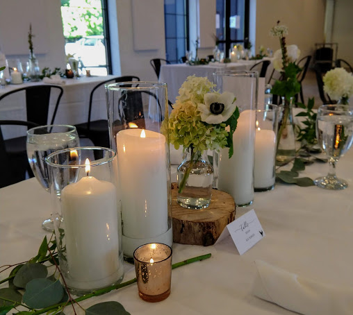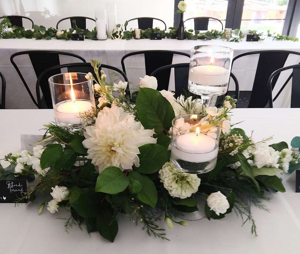 head table, each one can be adorned with candlelight and flowers. Hanging
