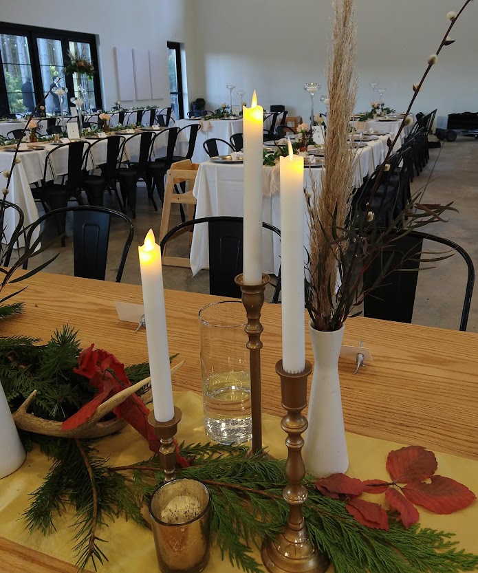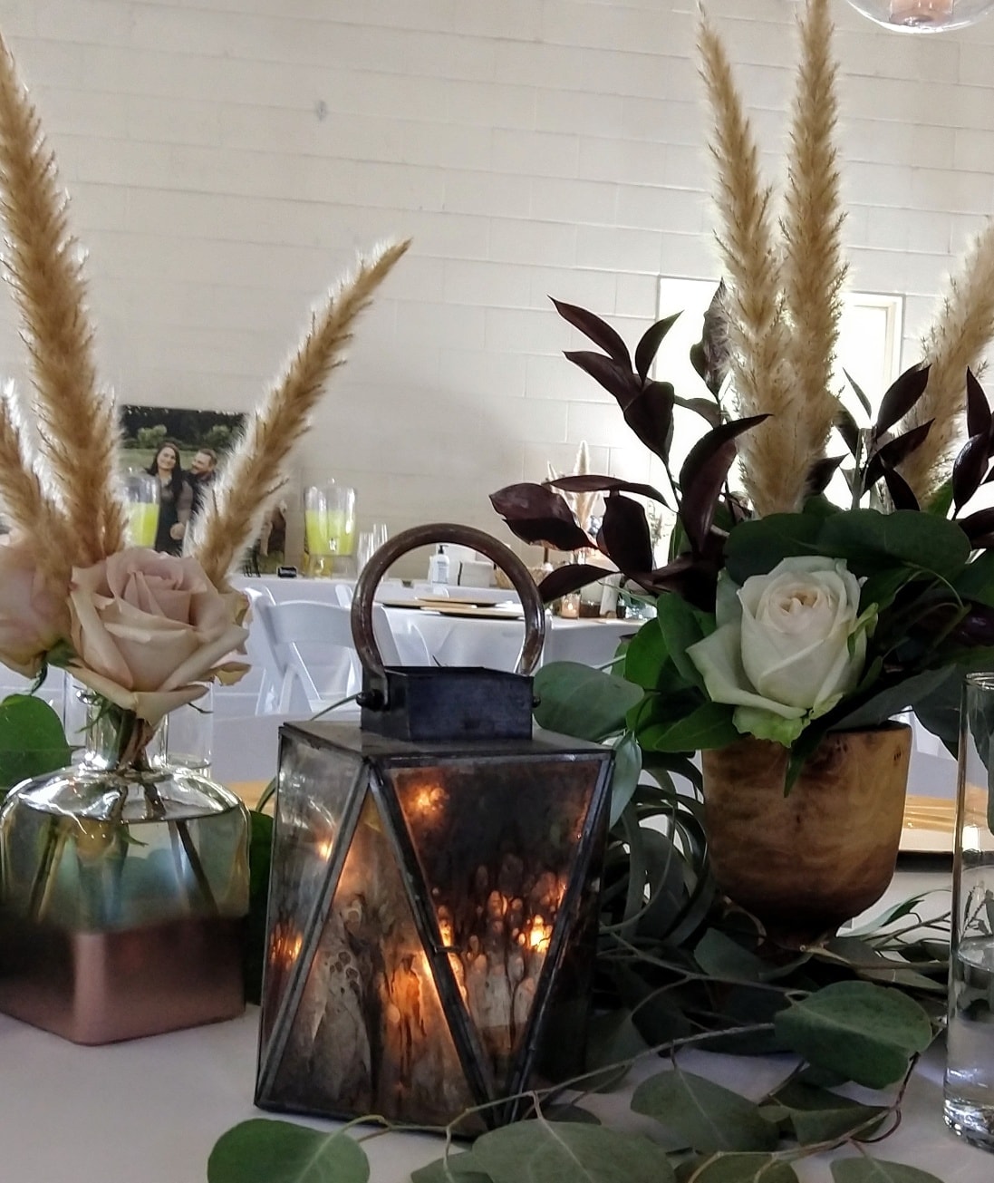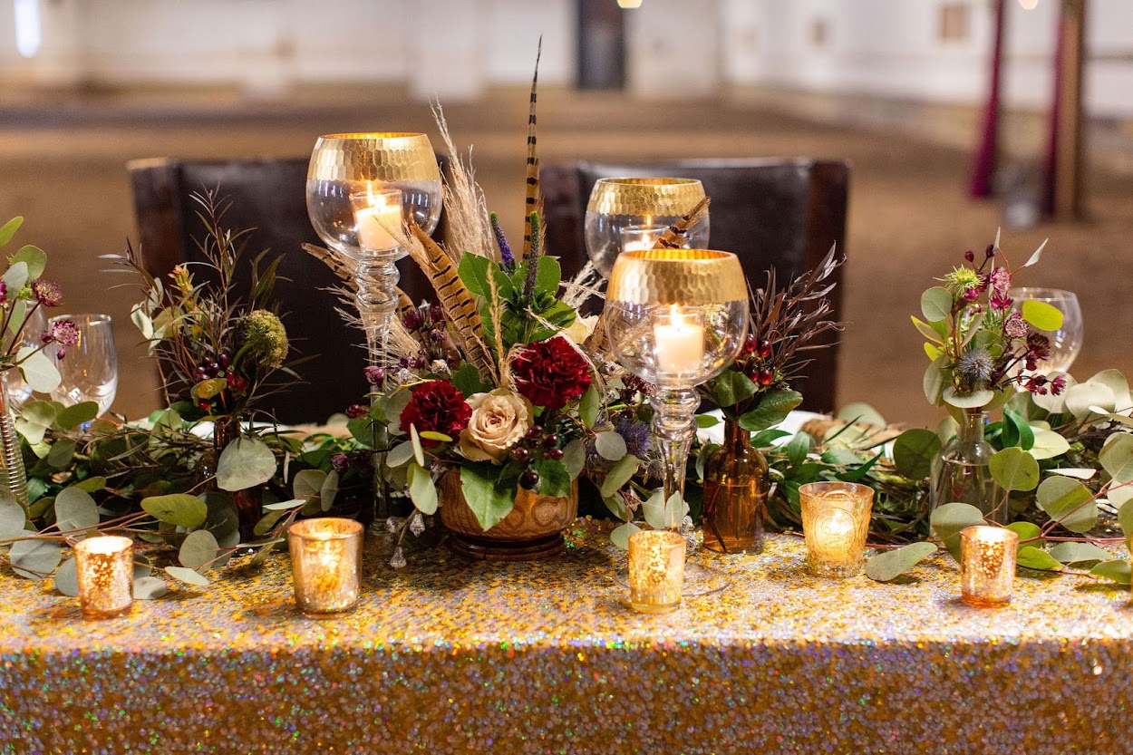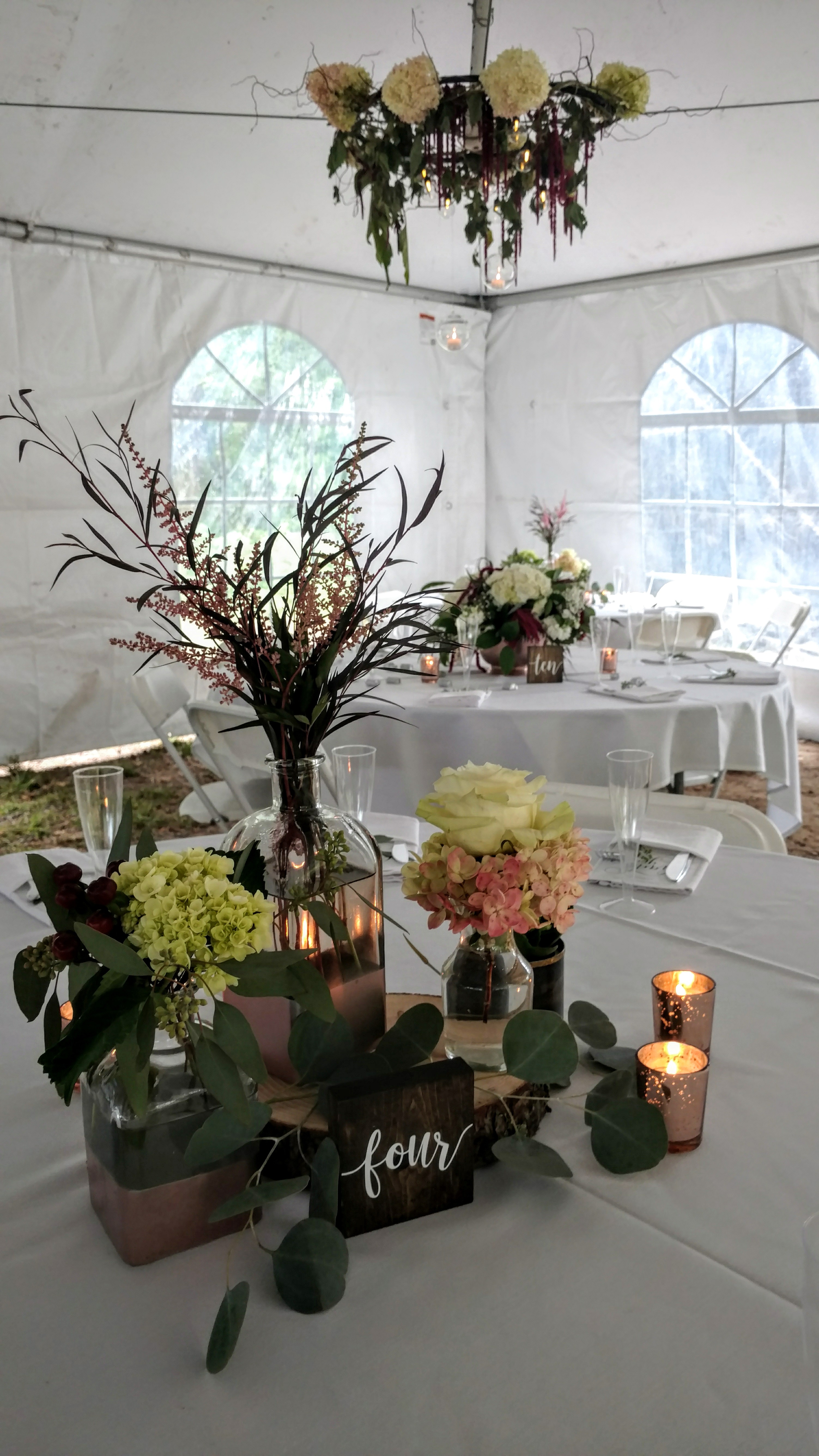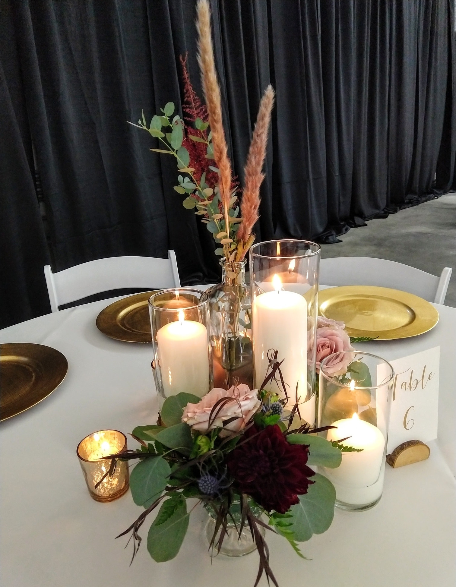 head table, each one can be adorned with candlelight and flowers. Hanging