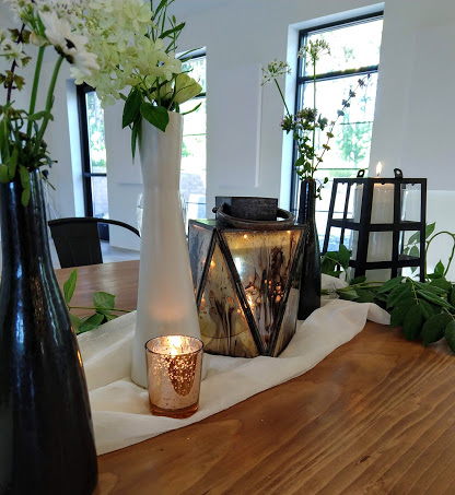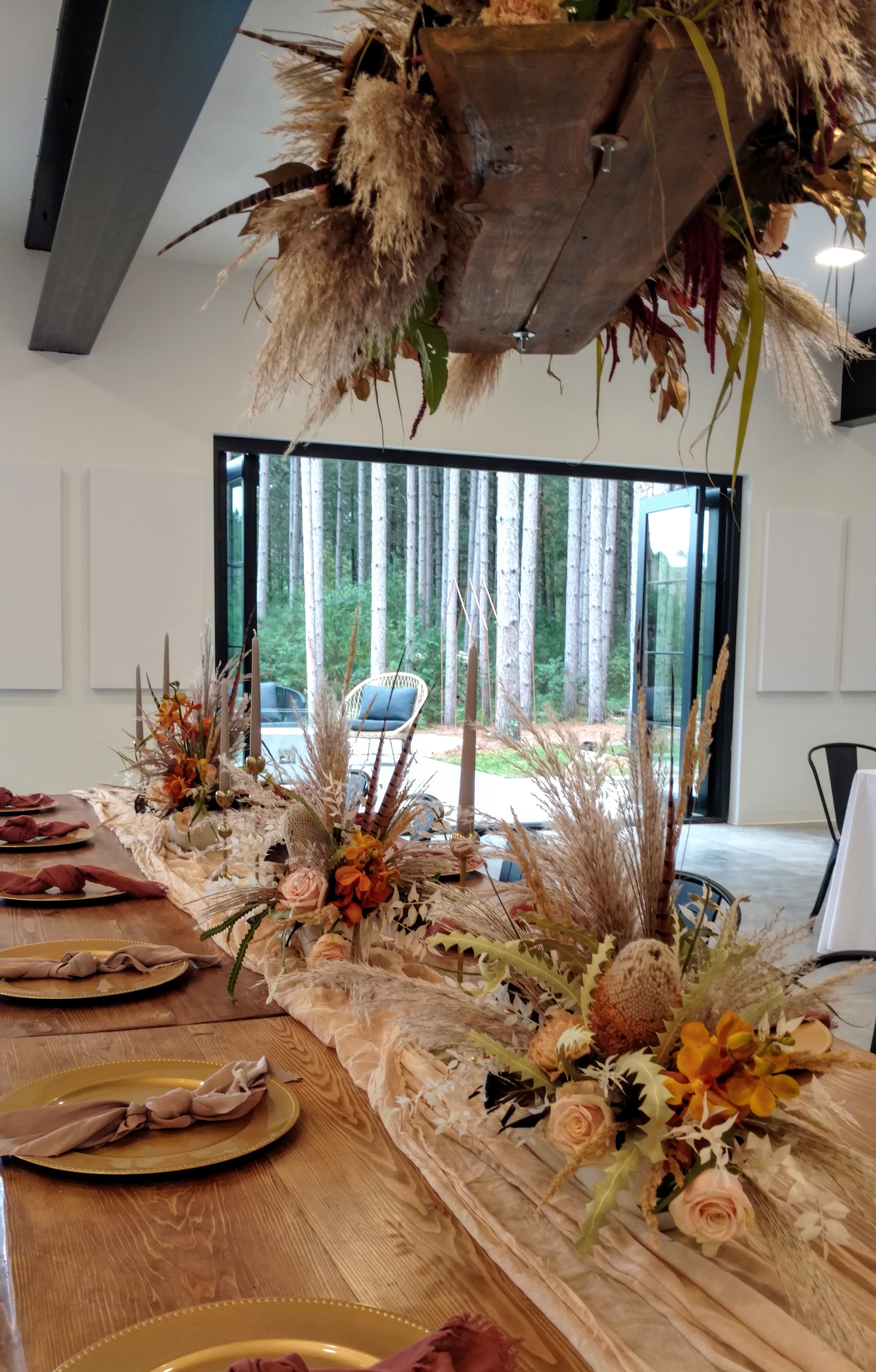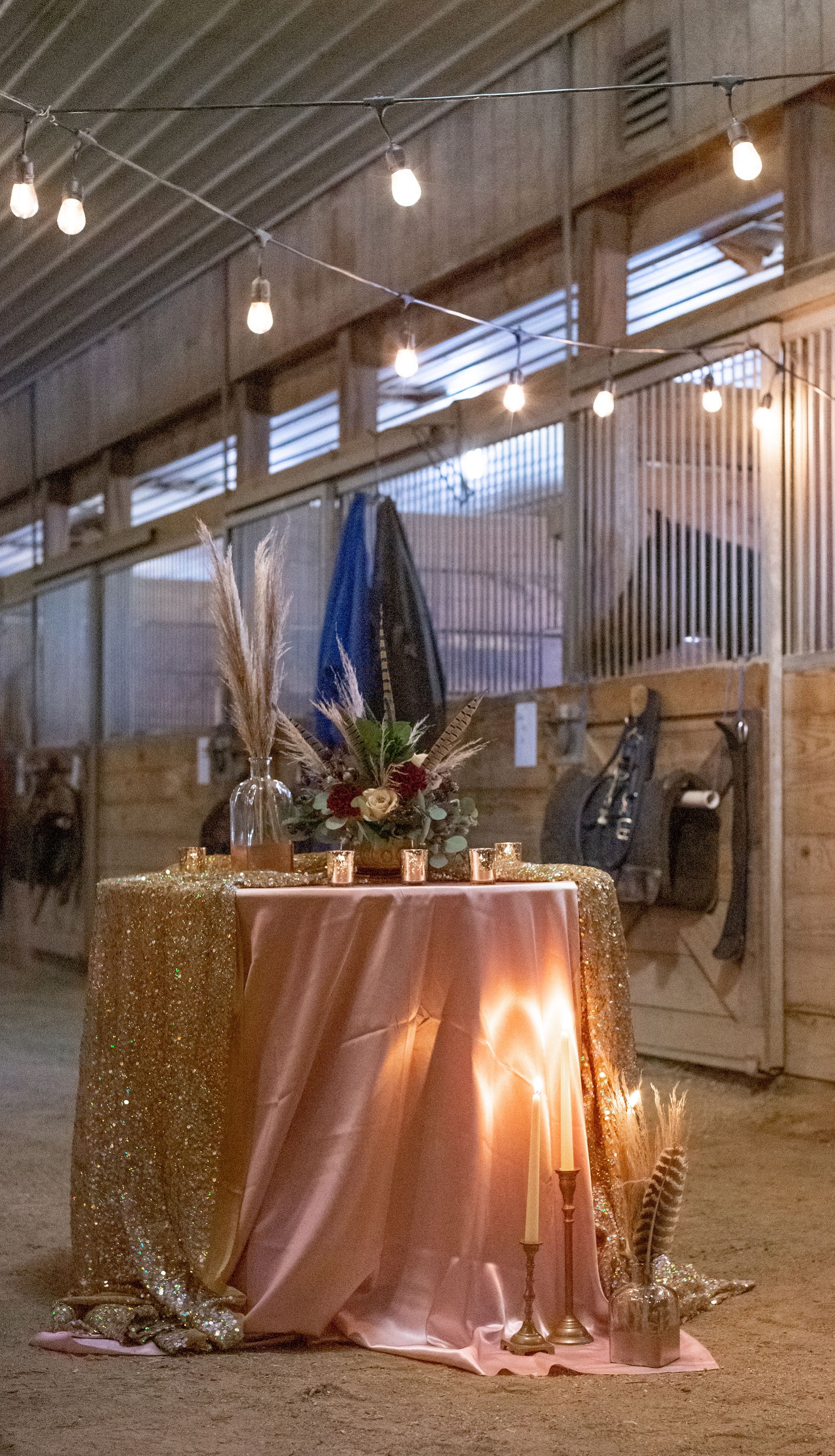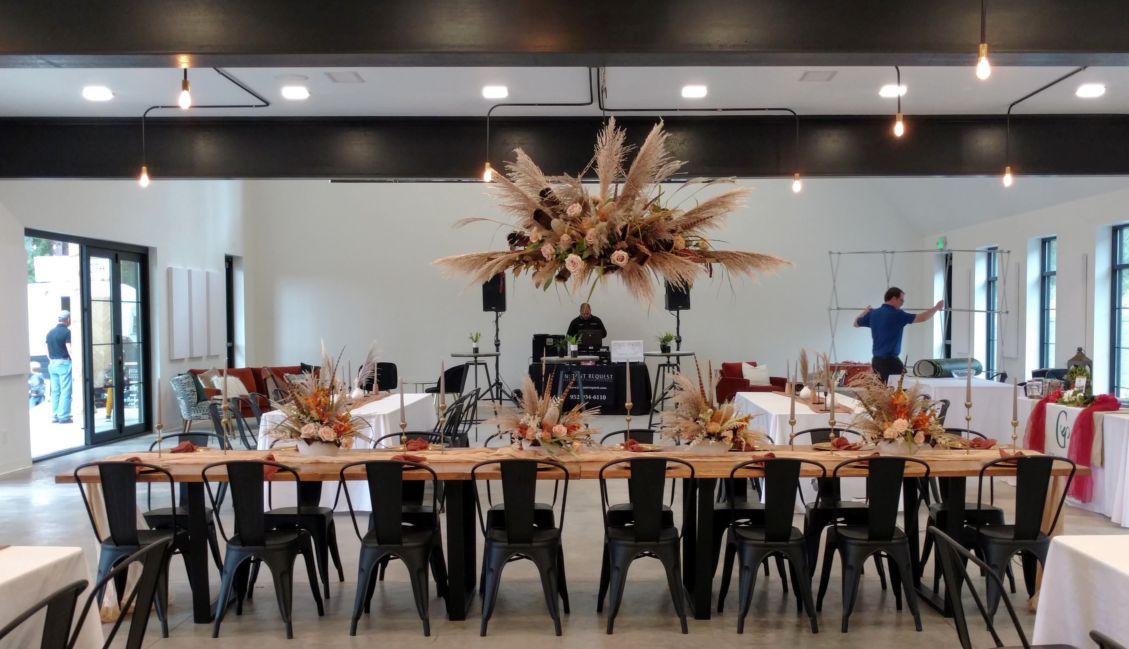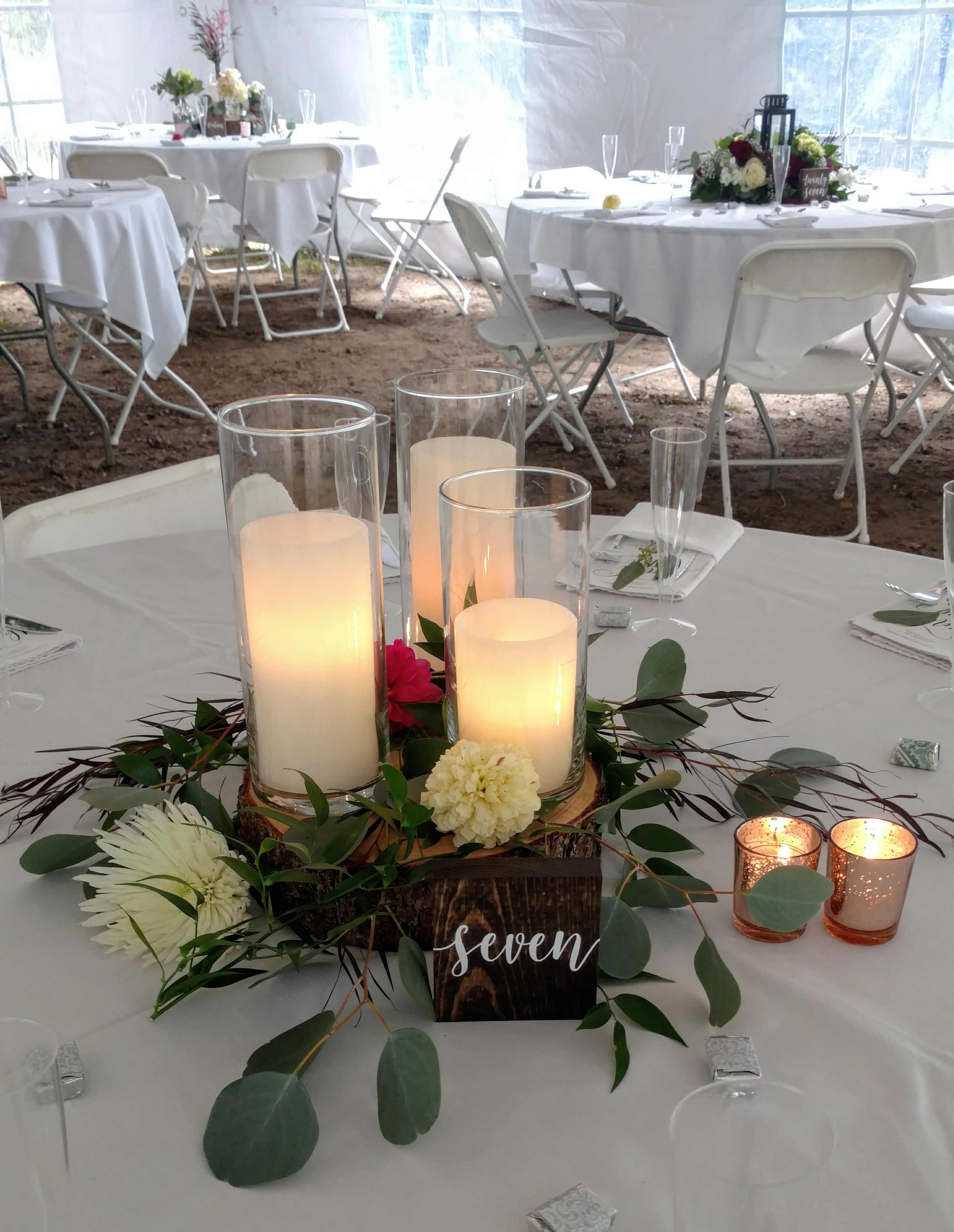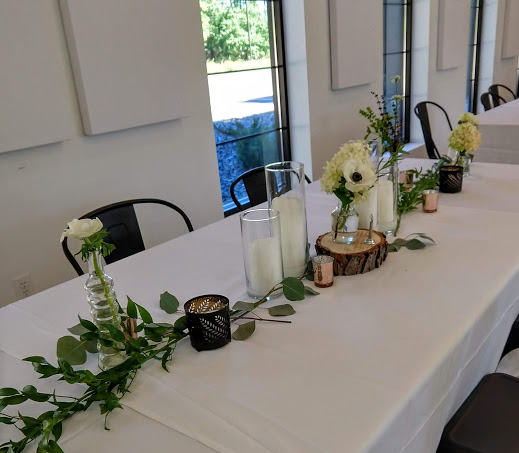 head table, each one can be adorned with candlelight and flowers. Hanging